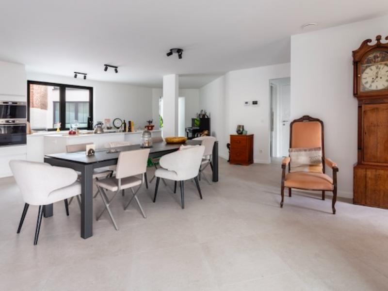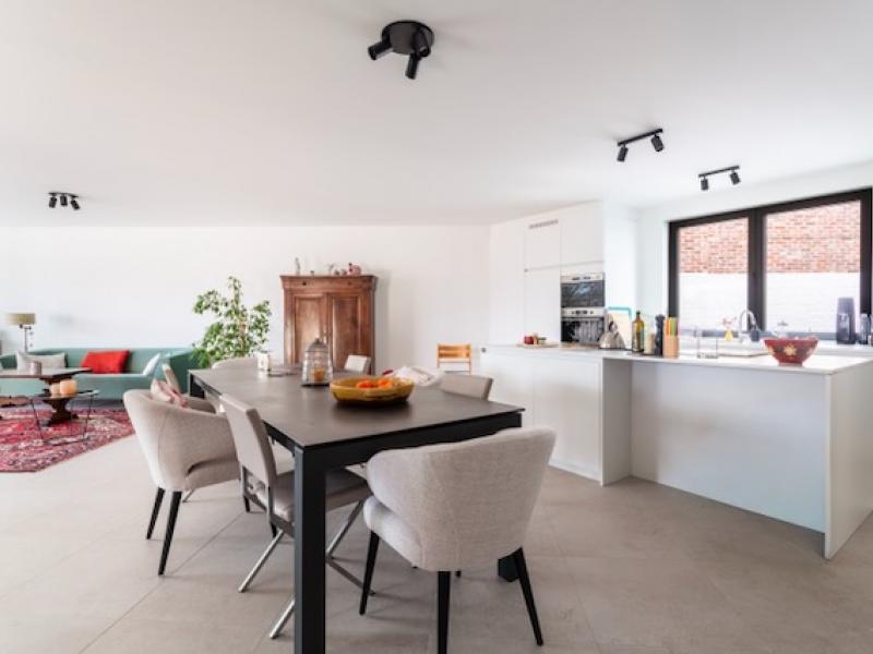 WELDRA TE HUUR: Riant luxe-appartement (127 m²) met groot overdekt terras (23 m²), gelegen aan de groene vesten in de prachtige residentie Lovenhof. Dit moderne appartement combineert ruimte, comfort en energiezuinigheid op een toplocatie, op wandelafstand van het centrum, winkels en andere voorzieningen. Het appartement bevindt zich op de eerste verdieping en biedt een uniek uitzicht op de groene versten van Lier. Dankzij de grote raampartijen baadt het hele appartement in natuurlijk licht. Het volledige appartement is voorzien van vloerverwarming, collectieve zonnepanelen en een uitstekende EPB-score (28), wat resulteert in een bijzonder laag energieverbruik. Via de inkomhal met ingemaakte vestiairekasten kom je in de riante leefruimte van maar liefst 70 m² met een stijlvolle maatkeuken uitgerust met een centraal kookeiland, inductiekookplaat, combi-oven, microgolfoven, koelkast met vriesvak, vaatwasser en talrijke opbergkasten. Vanuit de leefruimte is er directe toegang tot het riante, overdekte terras (23m2) – de ideale plek om te ontspannen met zicht op groen. Het appartement beschikt over een grote slaapkamer (15 m²) en een tweede kamer (9 m²) die perfect dienst kan doen als logeerkamer of bureau met rechtstreekse toegang naar het terras. De badkamer is luxueus ingericht met een ruime inloopdouche met regensproeier, een elegant badkamermeubel met LED-verlichte spiegel, en een tweede toilet. Verder is er een gastentoilet en een aparte berging met aansluitingen voor wasmachine en droogkast. Bij het appartement hoort een private autostaanplaats in de ondergrondse garage én een afgesloten fietsenberging voor twee fietsen. Het gebouw is uitgerust met een lift en volledig rolstoeltoegankelijk. Huurprijs:1350 euro (+ 70 euro gemeenschappelijke kosten). EPB/P.I.D. beschikbaar. Bezichtiging enkel na telefonische afspraak via 0487/759.758.