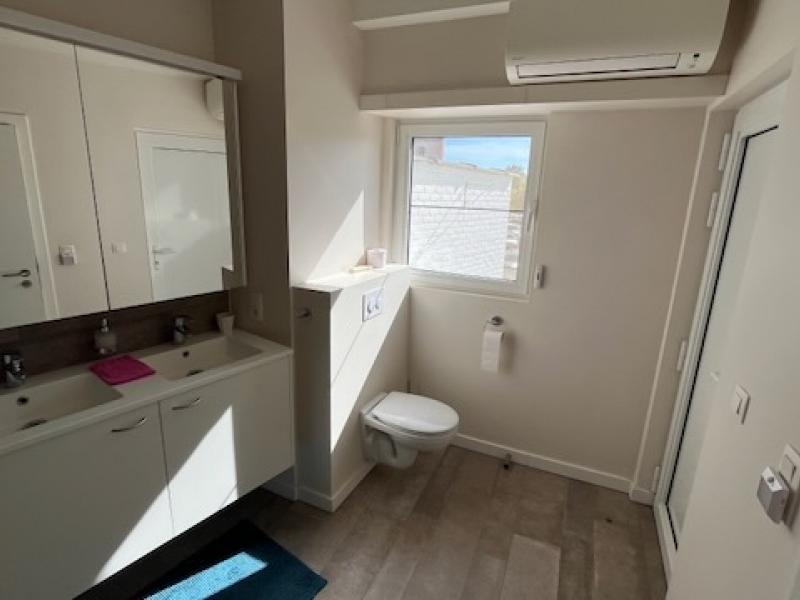 Riant luxe-appartement (165 m²) met groot zonneterras (30 m²) in hartje Nijlen. Gelegen op de eerste verdieping, midden in het centrum van Nijlen, biedt dit stijlvolle moderne appartement alle comfort en ruimte die je zoekt. Met een bewoonbare oppervlakte van maar liefst 165 m² en een riant terras van 30 m², is dit een unieke woonkans voor wie houdt van luxe, licht en een centrale ligging. Het appartement is uitgerust met vloerverwarming via een energiezuinige warmtepomp én airconditioning, wat zorgt voor een optimaal leefcomfort, zomer én winter en een laag EPC. Overal in het appartement vind je moderne afwerking, ingebouwde led-verlichting en een hoogwaardige afwerking. Indeling: Inkomhal met berging. Trap naar 1ste verdiep. Inkomhal, Zonnige leefruimte van 50 m² met grote raampartijen en zicht op het kerkplein en schuifraam naar het ruime terras. Het terras is uitgerust met stopcontacten, buitenverlichting en een waterkraan. Open moderne luxe-keuken (14 m²) met granieten werkblad en volledig uitgerust met kwalitatieve toestellen: inductiekookplaat, oven, microgolf, koelkast, diepvries en vaatwasser. Een aparte berging van 7 m² biedt extra stockageruimte. Het appartement beschikt over 2 slaapkamers, waarvan de master bedroom voorzien is van een ruime dressing en rechtstreekse toegang tot de moderne badkamer (8 m²). Deze is uitgerust met een ligbad, douche, dubbele lavabo met meubel en spiegelkast, en 2de toilet. Aan de achterzijde van het gebouw zijn elektrische rolluiken voorzien voor extra comfort en privacy. Verder is er een aparte gastentoilet en een zeer ruime tweede berging van 17 m² ! met aansluitingen voor wasmachine en droogkast. Tot slot beschikt het appartement over een privatieve garagebox. Een exclusieve woonkans voor wie houdt van ruimte, comfort en een moderne afwerking, in het hart van Nijlen. Contacteer ons telefonisch voor een bezoek ter plaatse! 0487/759.758