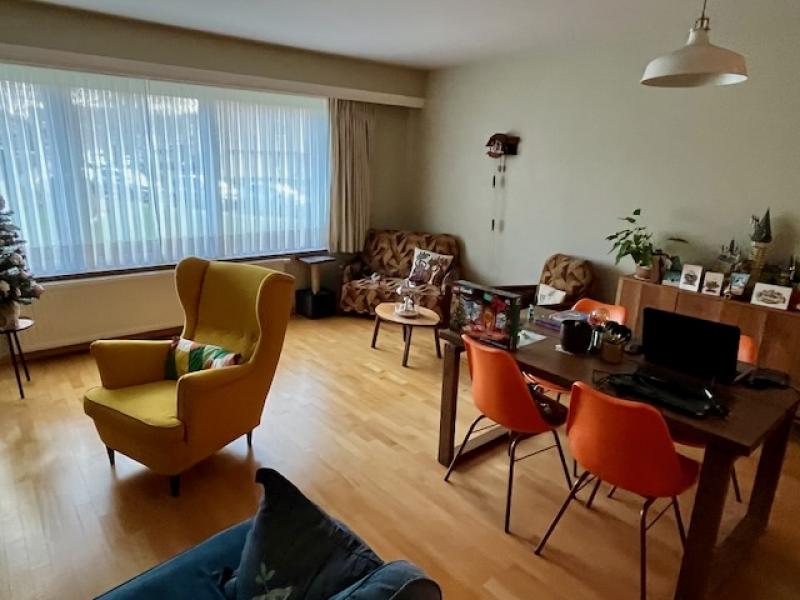 Ruim en zonnig gelijkvloers-appartement met 2 slpk, terras en autostaanplaats